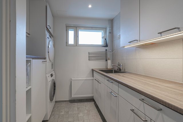 - Pesukoneliitäntä, lastenhoitopöytä/taso, ja pyykkikaapit