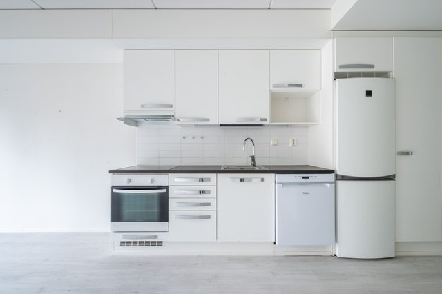 - Jääkaappipakastin, liesituuletin, astianpesukone, uuni, ja liesi