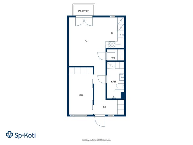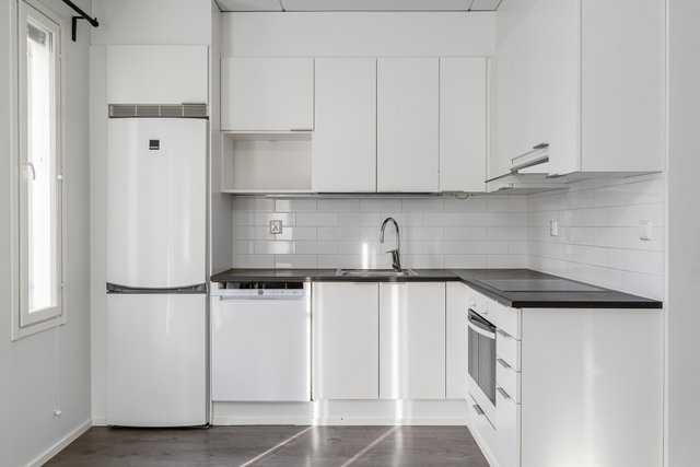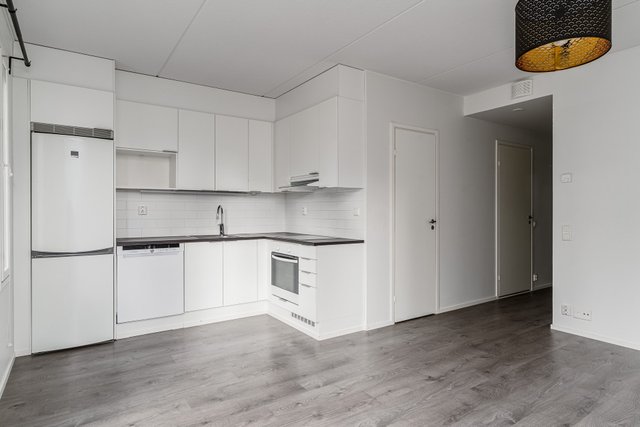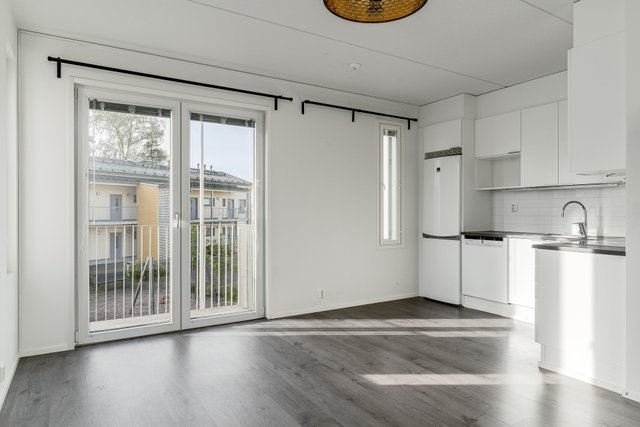 Asunnossa on avara pohjaratkaisu, jossa suuret ikkunat päästävät runsaasti luonnonvaloa sisään. Tilavan oloinen olohuone on täydellinen paikka rentoutua tai viettää aikaa perheen ja ystävien kanssa. Tyylikäs vaalea keittiö, jossa on myös hyvin kaappitilaa.