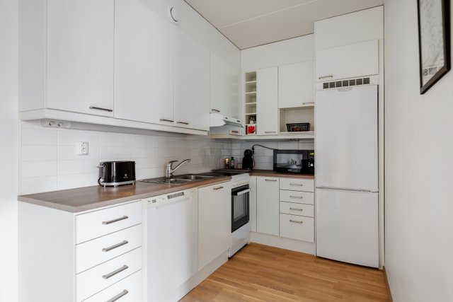 - Jääkaappipakastin, uuni, liesi, liesituuletin, ja astianpesukone