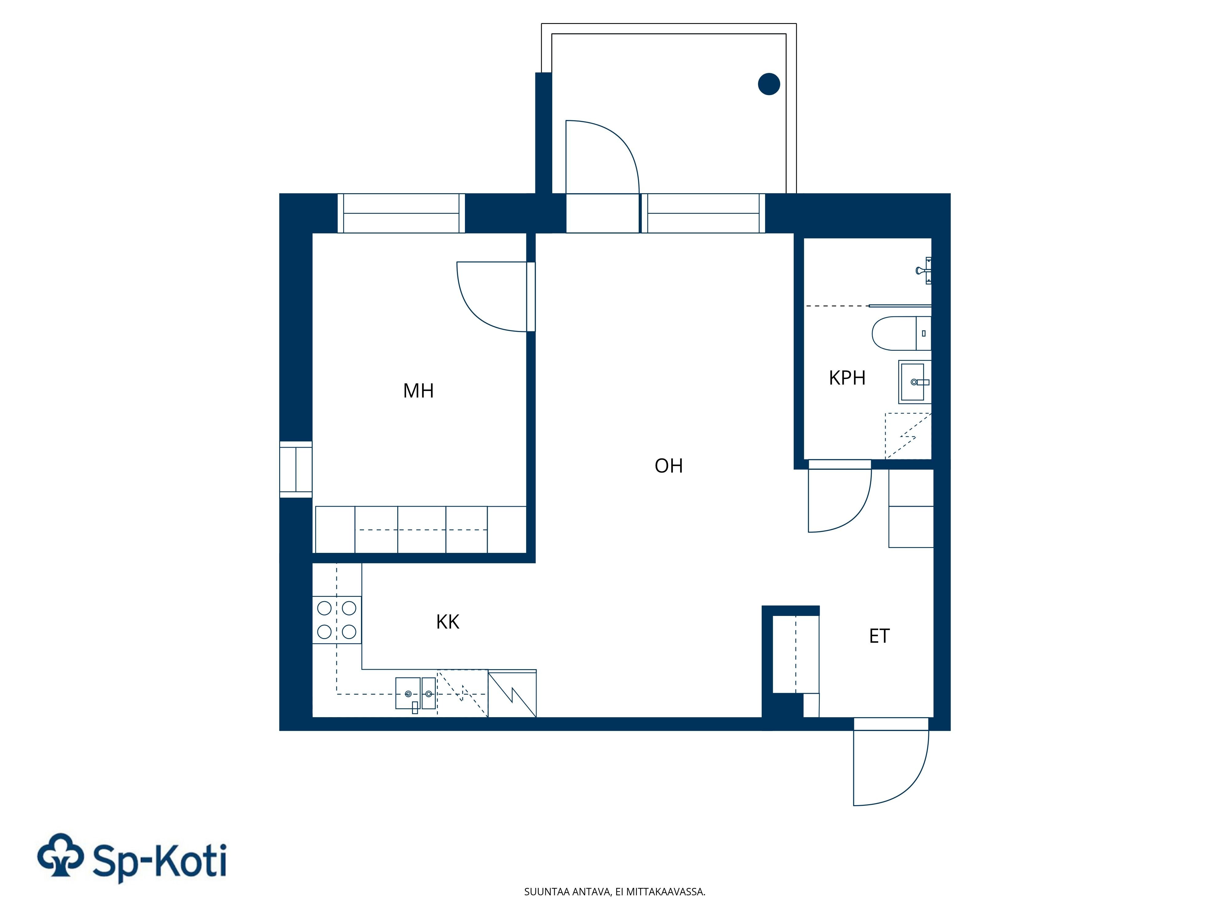 Asunnon avara pohjaratkaisu ja suuret ikkunat tuovat runsaasti luonnonvaloa sisään. Parvekkeella voi nauttia aamukahvit rauhassa, sillä se on lasitettu. Keittiö on varustettu nykyaikaisin laittein, ja kylpyhuoneessa on lattialämmitys sekä pesukoneliitäntä.