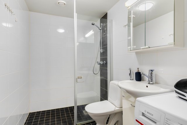 - WC-istuin, suihku, suihkuseinä, pesukoneliitäntä, lattialämmitys, peilikaappi, pesuallas, ja allaskaappi