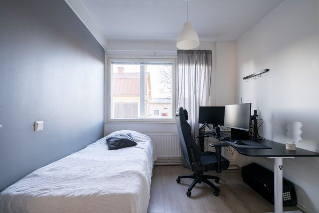 - Makuuhuoneita on riittävästi, kaksiossakin vaatehuoneen saa tarvittaessa pieneksi makuutilaksi.
