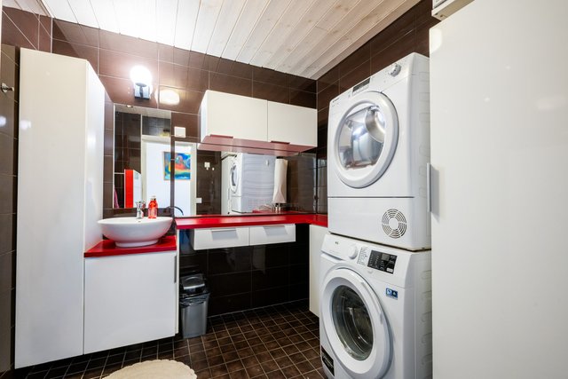 - As2 ja kaksiossa on oma sauna samoin kellarikerroksesta löytyy sauna.