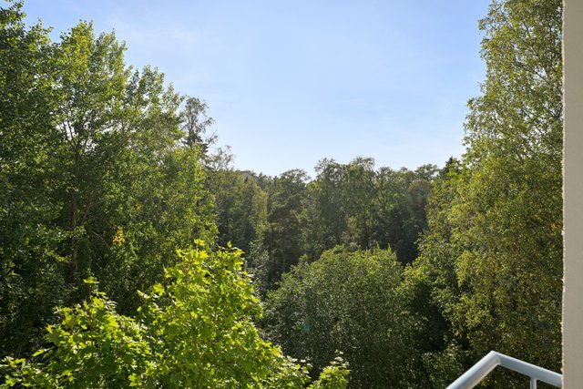 - Ikkunoista ja parvekkeelta vehreät näkymät. Näkymänä taloyhtiön takana olevan ulkoilualueen metsäinen maisema.