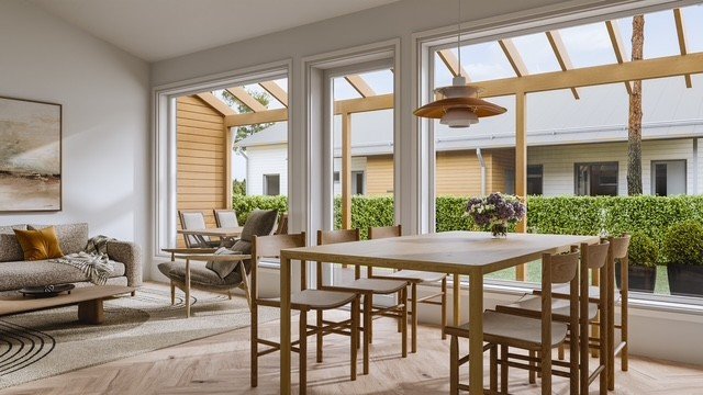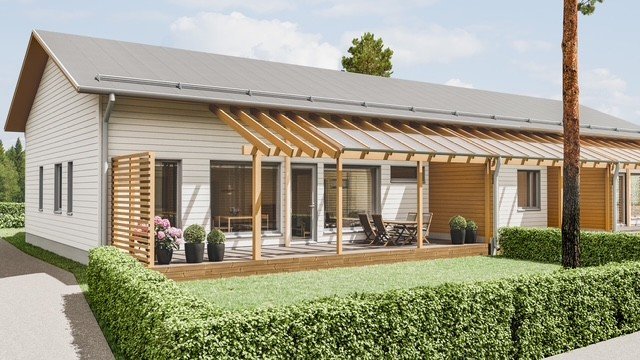 Ennakkomarkkinointi. Erinomaisella varustuksella ja suunnittelulla oleva yksitasoinen vähähiilinen rivitalokoti uudistuotantona tarjolla! Tässä pohjaratkaisussa on oma työtila ikkunalla, joten kaikki kolme makuuhuonetta voivat jäädä makuuhuoneiksi tarvittaessa. Tämä koti valmistuu arviolta n. 2026 jouluksi. Pienet muutokset ovat mahdollisia. Varaa nyt tämä päätyasunto itsellesi neuvotteluun materiaalien ym. valintaa silmällä pitäen!