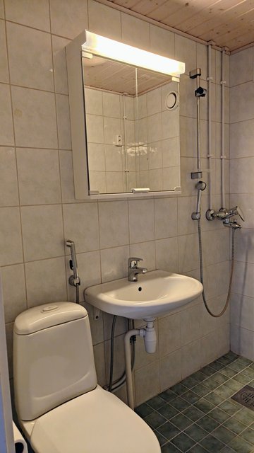 - Remontoitu LVIS-saneerauksen yhteydessä v. 2007. Lattia ja seinät laatoitettu. Suihku, käsienpesuallas, peilikaappi, wc-istuin, käsisuihku, rättipatteri ja pesukoneliitäntä.