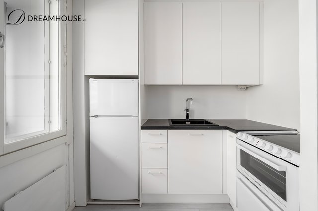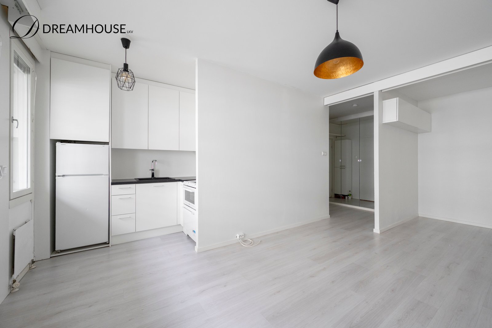 Upea kolmannen kerroksen yksiö sisäpihan suuntaan. Keittiö uusittu v 2018 sekä tehty pintaremontti jossa asunnon lattiat uusittu. Avara ja valoisa kokonaisuus. Olohuoneen yhteydessä makuualkovi. Kylpyhuoneeseen mahtuu hyvin pesukone. Iso lasitettu parveke. Asunto on heti vapaa ostajalle!