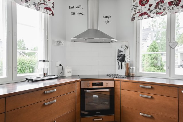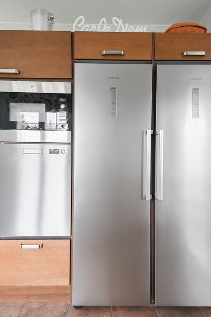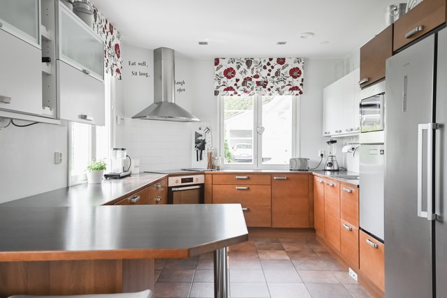 - Jääkaappi, erillinen pakastin, erillisuuni, liesi, liesituuletin, mikroaaltouuni, ja astianpesukone