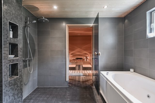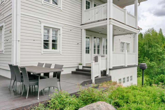 Rentoutumiseen ja viihtymiseen löytyy monia mahdollisuuksia: talossa on oma sauna, takkahuone, joka voi toimia myös harrastetilana ja kotiteatterihuone, joka voi toimia tarpeen vaatiessa talon 5 makuuhuoneena. Kokonaisuudessaan nämä alimman kerroksen tilat ovat n. 40 m2 suuremmat kuin huoneistoalaan on laskettu mukaan. Ulkotiloissa on sekä parveke että terassi, joissa voi nauttia kesäpäivistä. Autotalli ja lämmin varasto tarjoavat reilusti säilytystilaa tavaroille ja suojaa autolle.