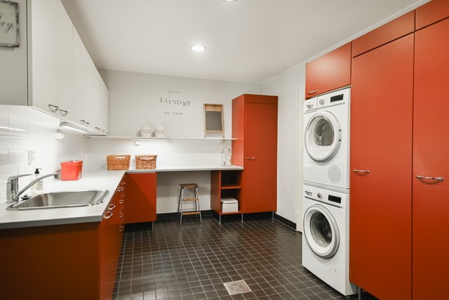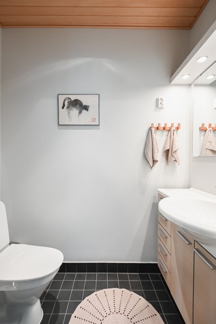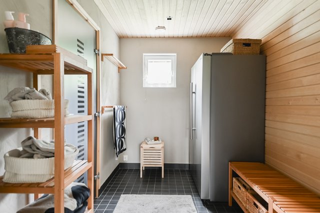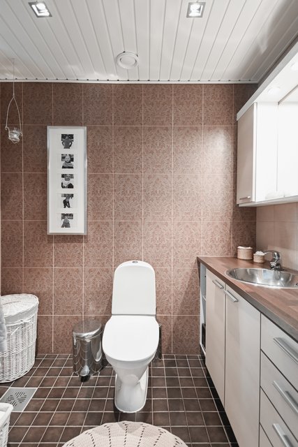 - Pesukoneliitäntä, lattialämmitys, pesuallas, lattiakaivo, silityspöytä/taso, pyykkikaapit, pöytätaso, tila pesutornille, ja keskuspölynimuri