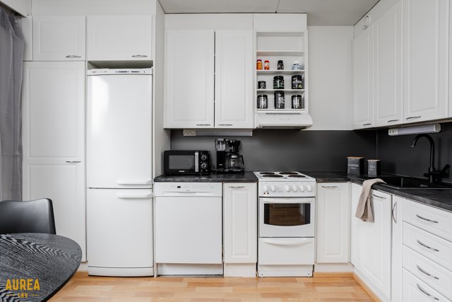 - Jääkaappipakastin, liesi, liesituuletin, ja astianpesukone