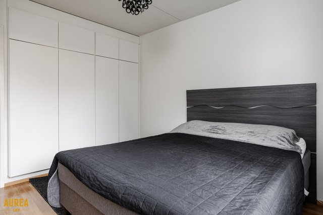 - Hyvänkokoinen makuuhuone jossa runsaasti säilytystilaa.
