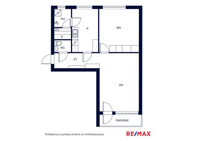 - Makuuhuoneen kaapisto, eteisen kaapisto ja naulakko, sähkötakka parvekkeella.