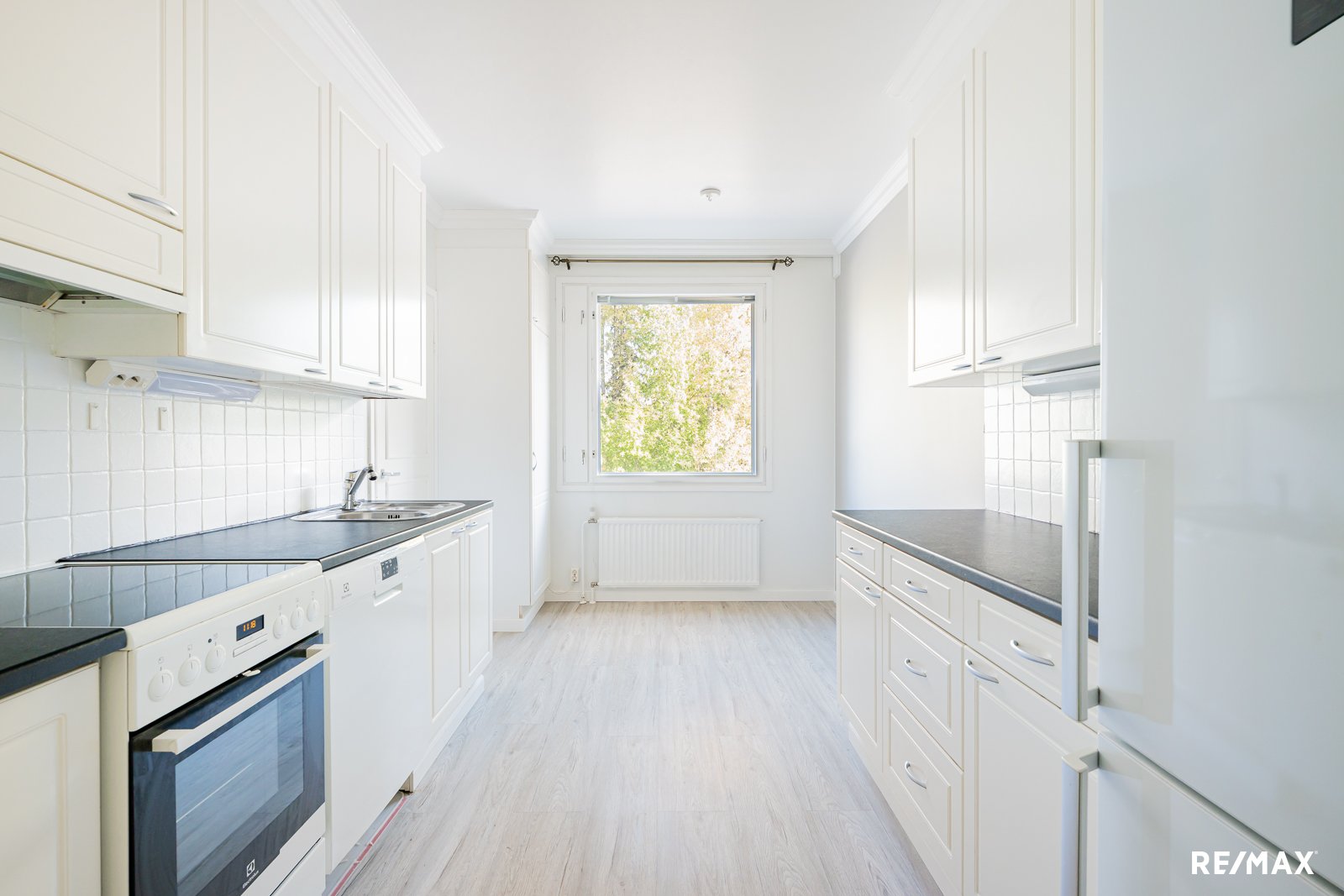 - Jääkaappipakastin, uuni, liesi, liesituuletin, ja astianpesukone
