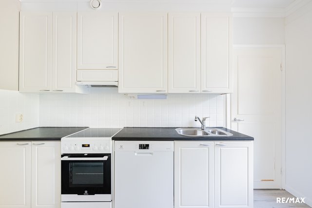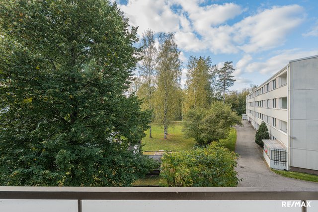 Asunto sijaitsee talon toisessa kerroksessa, ja sieltä on käynti tilavalle lasitetulle parvekkeelle, joka tarjoaa mukavan lisätilan rentoutumiseen. Keittiö on varustettu nykyaikaisilla kodinkoneilla, kuten induktioliesi ja astianpesukone, mikä tekee arjen askareista sujuvia. Makuuhuoneen ja eteisen kaapistot tarjoavat runsaasti säilytystilaa.