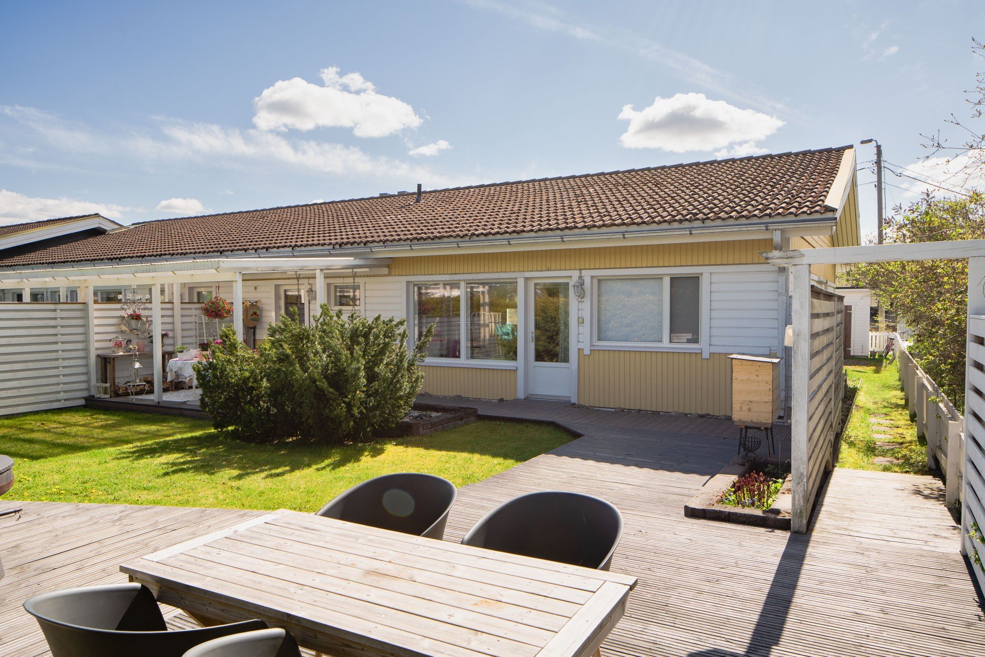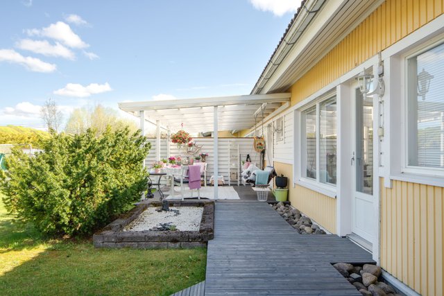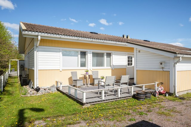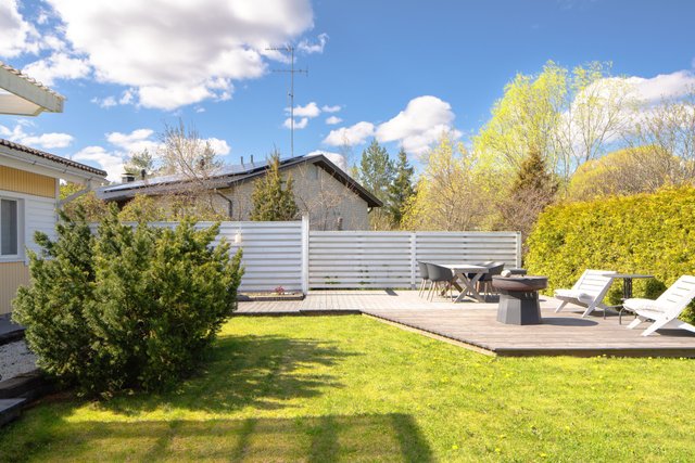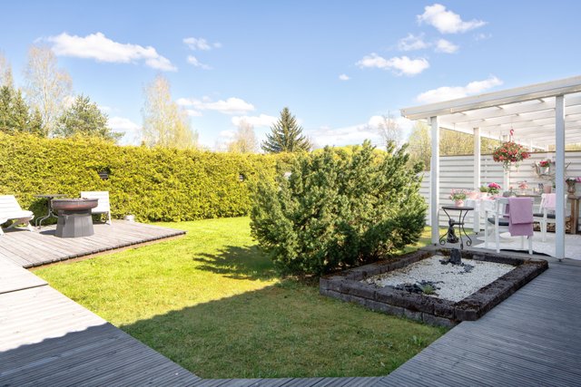 Asunnolla suojaisa iso takapiha terasseineen antaa mahdollisuuden moneen harrastukseen ja ajanviettoon. Pidätkö puutarhanhoidosta tai haluatko lapsille trampoliinin ja hiekkalaatikon vai halutko vain rentoutua omassa rauhassa, tilaa näihin harrastuksiin on. Asunnolla lisäksi etuterassi talon sisäänkäynnin puolella.