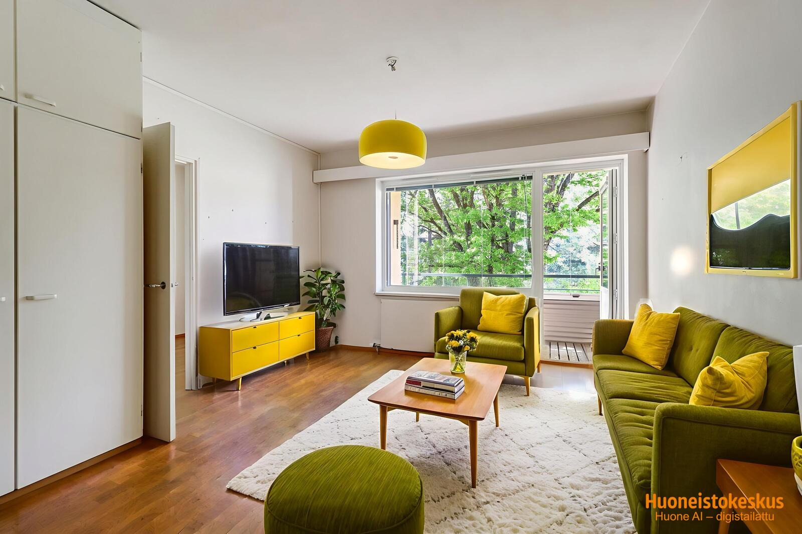 - eteisen peili, parvekkeen puinen laatoitus ja matto. Lisätietoja sisältyvistä varusteista: kiinteät valaisimet, naulakko, sälekaihtimet/rullaverhot, verhotangot.
