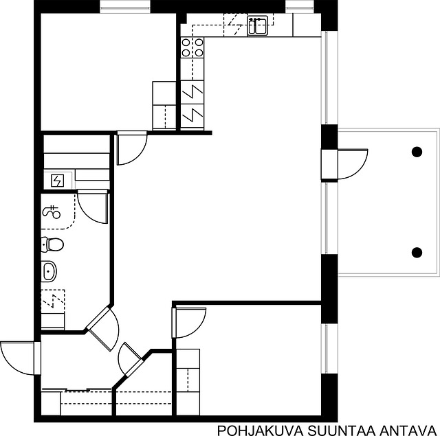 - Lisätietoja sisältyvistä varusteista: huoneistokohtainen ilmanvaihtokone, sälekaihtimet.