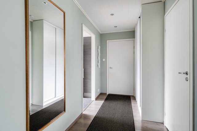 - Eteisessä liukuovikaapisto ja kaappi.