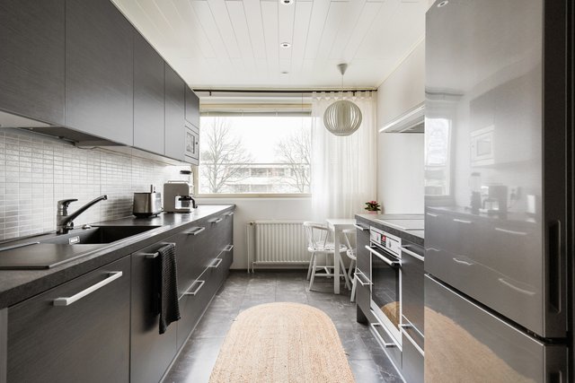 - Jääkaappipakastin, liesi, erillisuuni, mikroaaltouuni, astianpesukone, ja liesituuletin