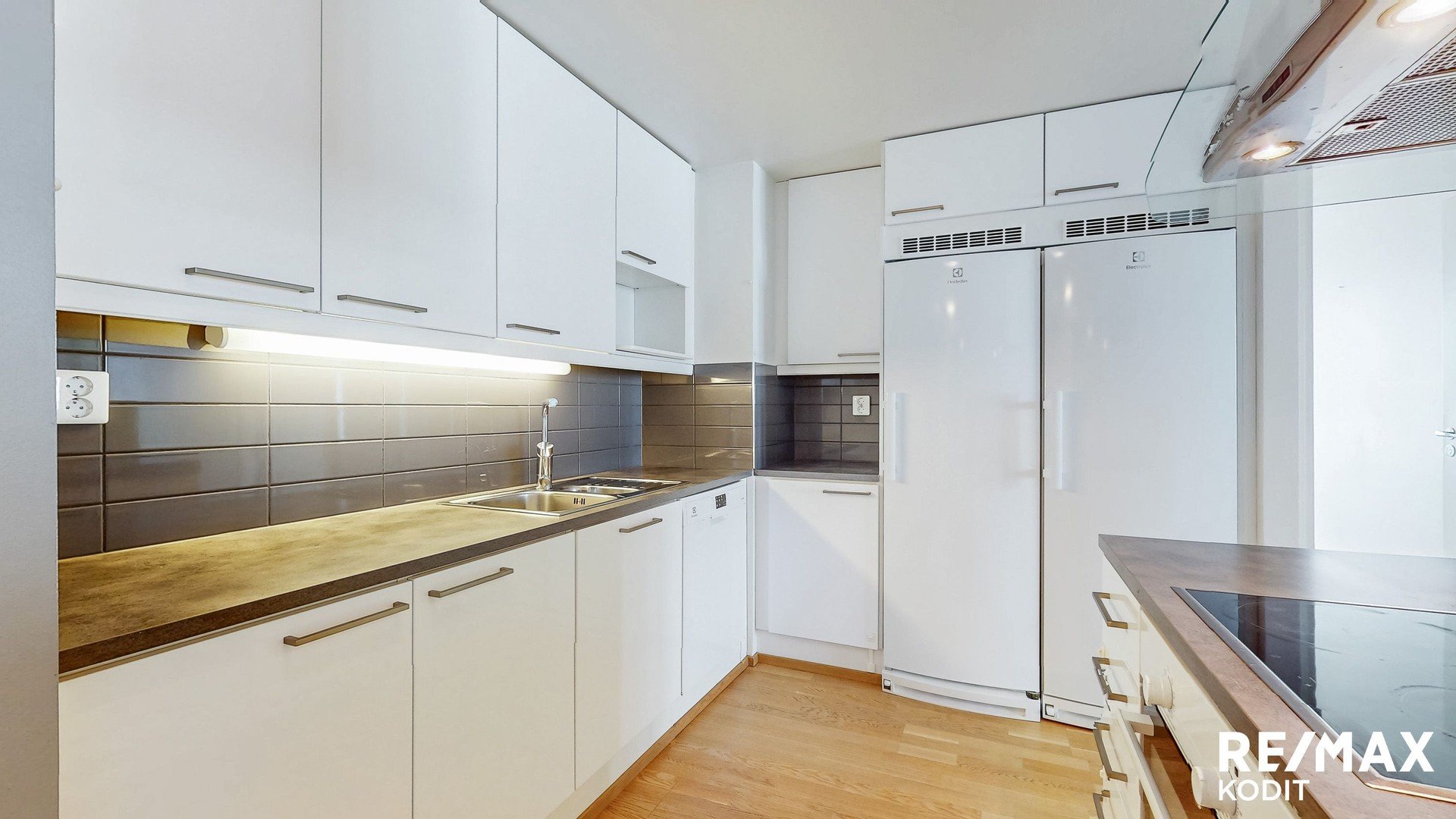 Kodin sydän on avara olohuone, joka yhdistyy saumattomasti moderniin keittiöön. Keittiössä on kaikki tarvittavat varusteet, kuten astianpesukone ja erillisuuni. Asunnossa on kaksi makuuhuonetta, joissa molemmissa on parkettilattiat ja maalatut seinät. Oma sauna ja tyylikäs kylpyhuone lattialämmityksellä tarjoavat arjen luksusta, sekä erillinen wc.