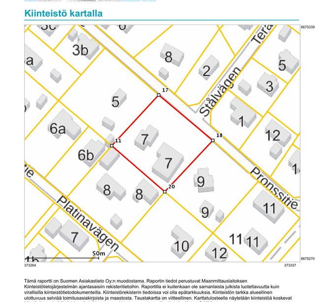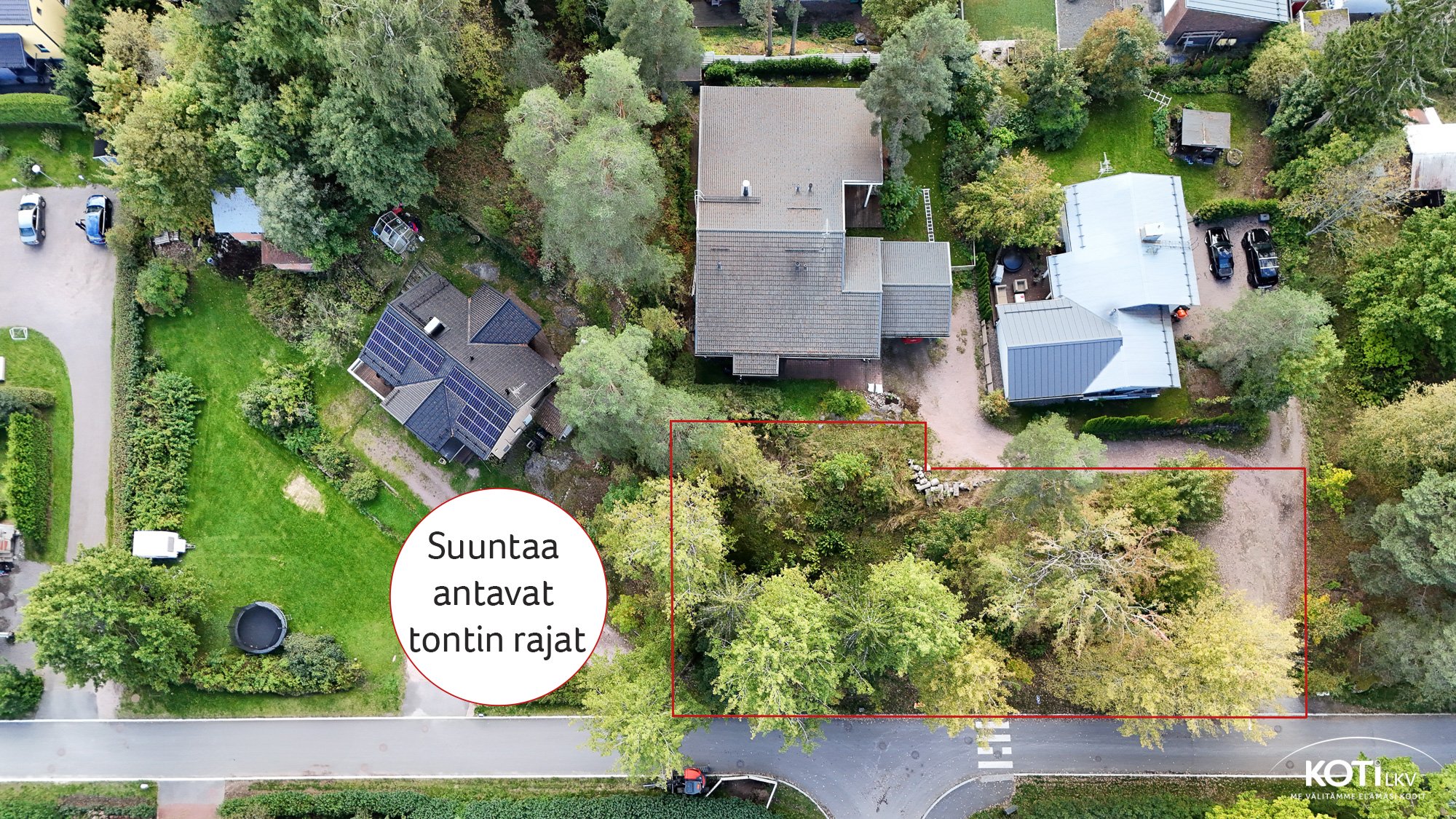 - koko kiinteistön pinta-ala on 2503 m2. Kiinteistö on jaettu hallinnanjakosopimuksella näiden kolmen hallinta-alueen kesken ja nyt myynnissä olevan määräosan pinta-ala on 933 m2. Kiinteistön kahdelle muulle hallinta-alueelle on jo rakennettu omakotitalot ja nyt myynnissä oleva hallinta-alue (933m2) myydään rakennuspaikkana.
