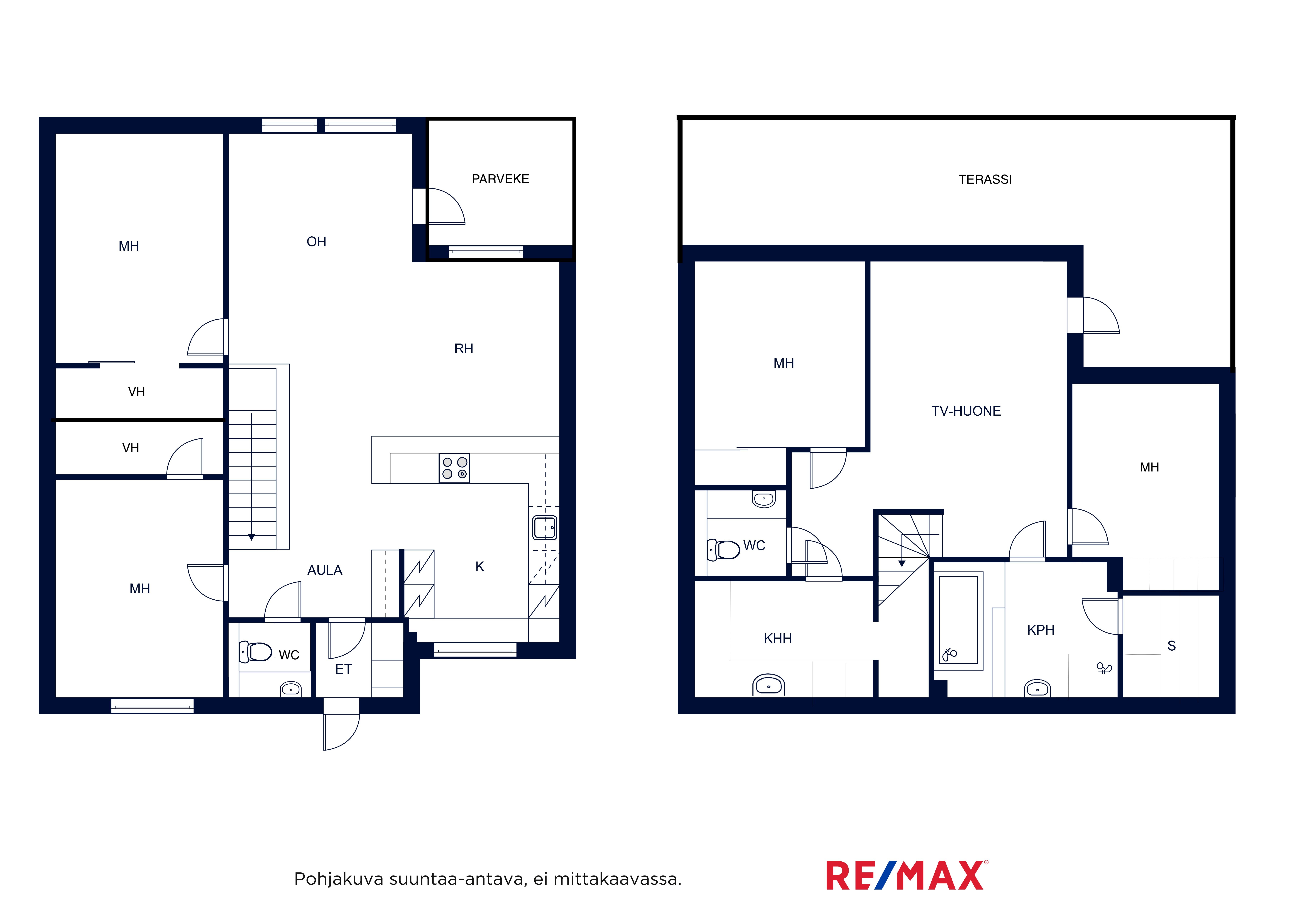 2 oh, 4 mh, avok, rt, 2 vh, kph, khh, s, 2 wc, parv, v, takapiha, ap- ja venepaikkamahd.