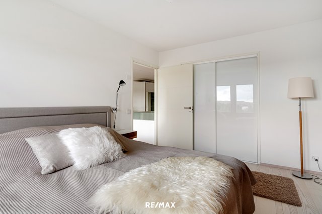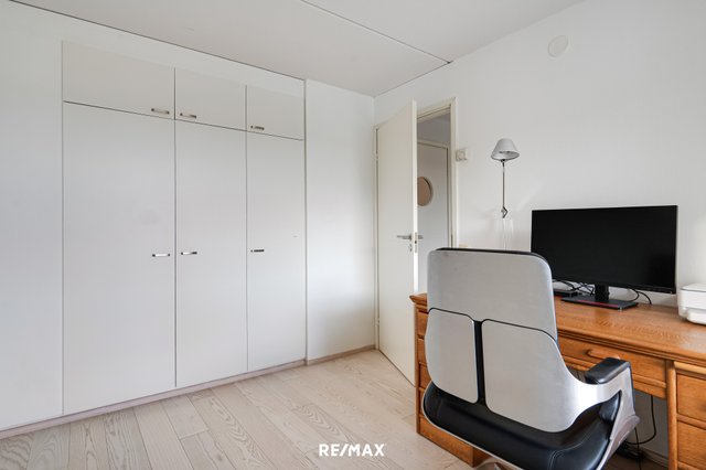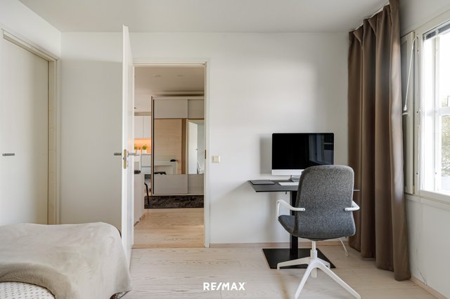 Oleskelutilan lattia on upeaa Timberwisen valkovahattua saarniparkettia ja koko asunto lämpeääkin jalalle mukavalla kaukolämmön lattialämmityksellä. Portaiden kaunis kaide valaistuksella sekä seinä ovat saman arkkitehdin suunnittelemat. Yläkerrasta löydät myös kaksi kodin neljästä makuuhuoneesta sekä tyylikkäät wc-tilat seinäistuimineen. Molempien makuuhuoneiden yhteydessä on luksuksena walk-in vaatehuoneet.