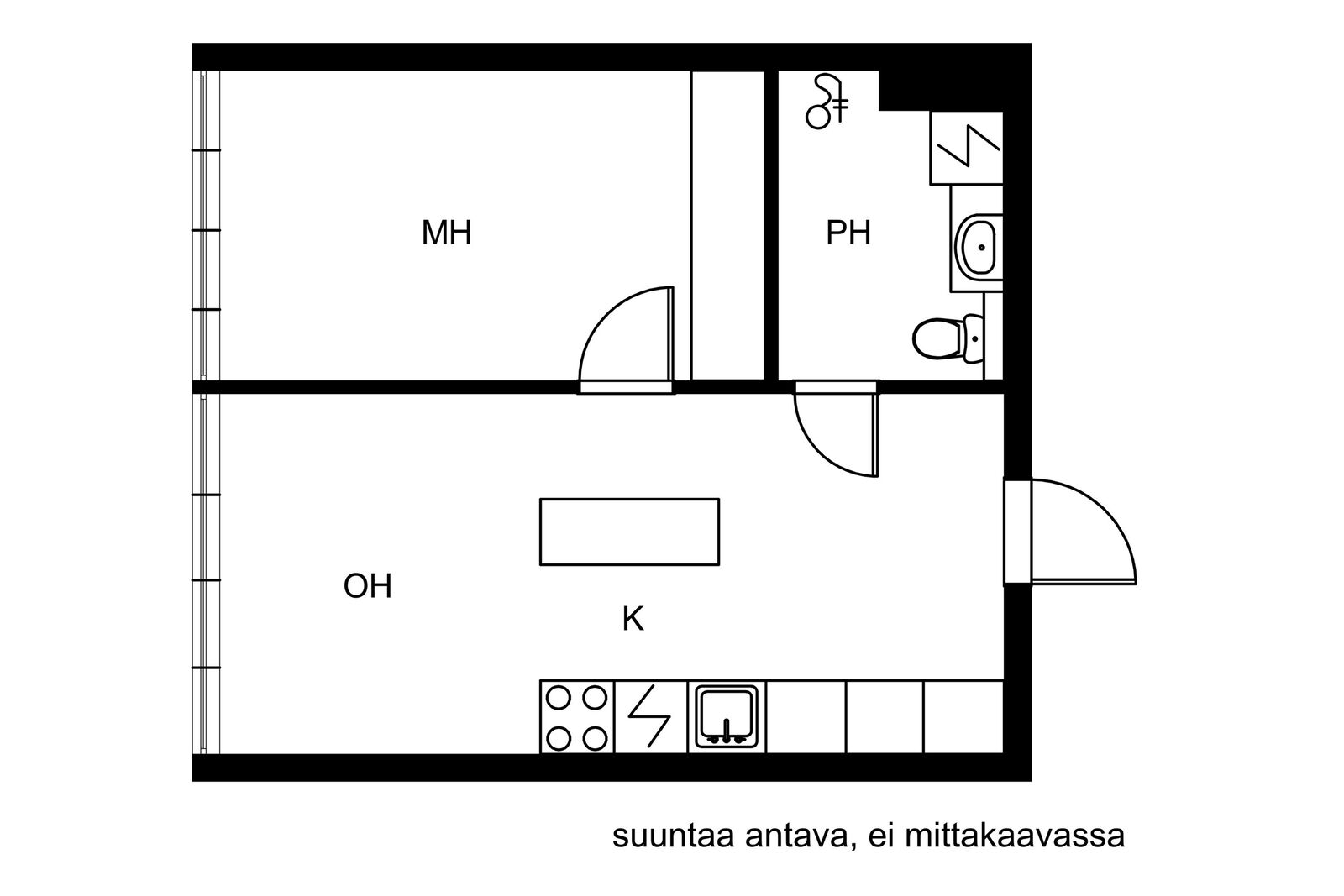 - Pesukoneliitäntä, suihkuseinä, wc-istuin, lattialämmitys, peilikaappi, suihku, ja kiinteät valaisimet