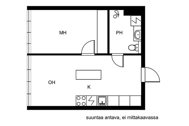 - Liesi, liesituuletin, erillisuuni, astianpesukone, jääkaappipakastin, ja liesitaso, kiinteät valaisimet