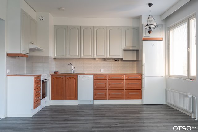 - Jääkaappipakastin, astianpesukone, ja liesi