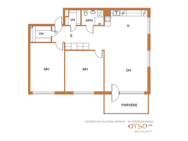 - Ei tarkistusmitattu. Pinta-alat saattavat tämän ikäisissä kohteissa (yhtiö rekisteröity ennen 01.01.1992) poiketa olennaisestikin asuinrakennusten nykyisten mittaustapojen ja standardien (SFS 5139) mukaan laskettavasta asuintilojen pinta-alasta. Pinta-ala voi siis olla edellä mainittua pienempi tai suurempi.