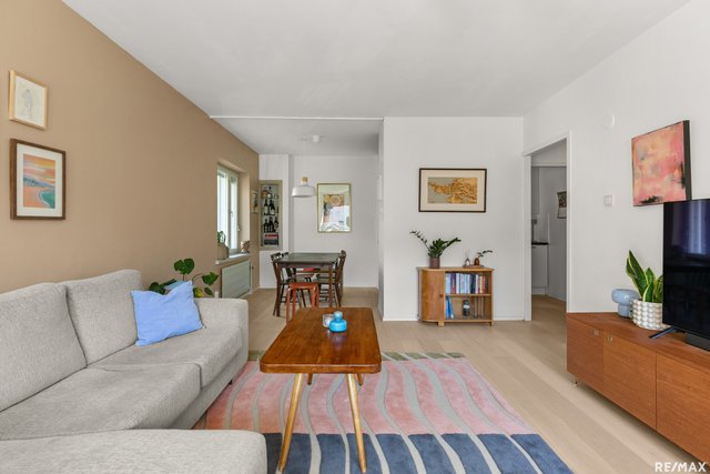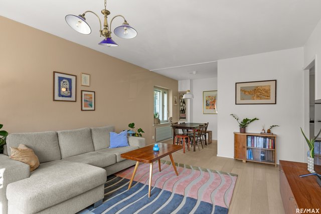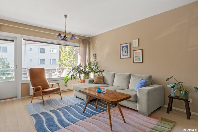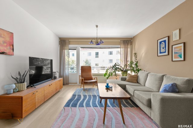 - Tilava ja valoisa olohuone, josta on näkymä kahteen ilmansuuntaan. Käynti etelään suuntautuvalle parvekkeelle.