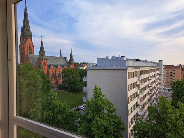 - Läpitalon huoneisto. Näkymät avautuvat vehreän kaupunkikorttelin kattojen ylle Mikaelinkirkolle sekä rauhalliselle sisäpihalle.