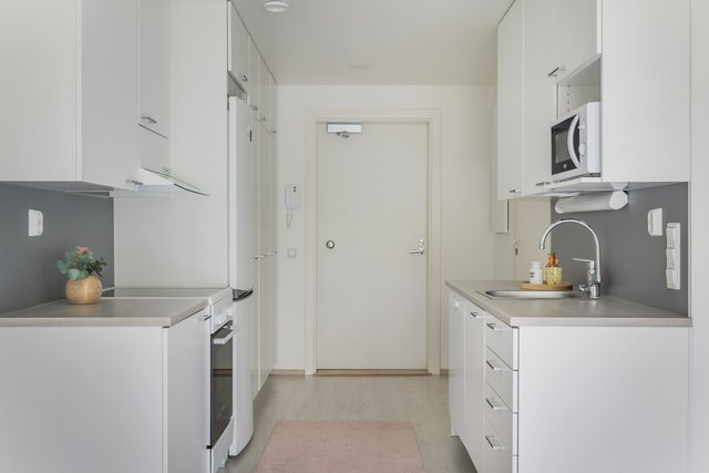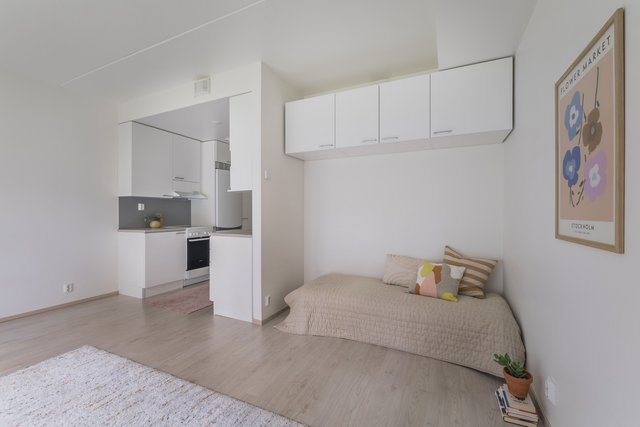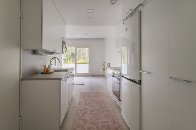 Asunnossa on tehokkaat neliöt, miellyttävä vesikiertoinen lattialämmitys, eteisessä runsaasti säilytystilaa, iso kylpyhuone ja keittiö kätevästi käytävän varrella. Pihalle ilta-aurinkoon pääsee suoraan tilavasta olohuoneesta. Asunto on vuokrattu 1.11.2025 alkaen määräaikaisella vuoden sopimuksella, jonka jälkeen vuokrasopimus jatkuu toistaiseksi voimassaolevana. Vuokra 590 e/kk