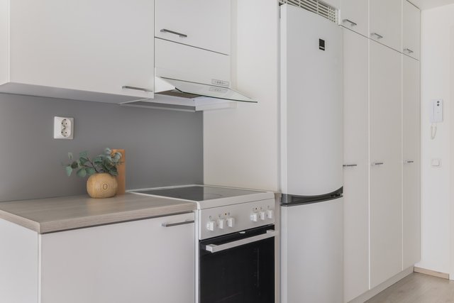 - Jääkaappipakastin, astianpesukone, liesituuletin, mikroaaltouuni, ja liesi