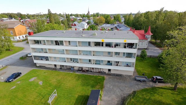 Denna rymliga och ljusa fyrarumslägenhet är belägen i Kristinestads centrum på Badhusgatan 2.