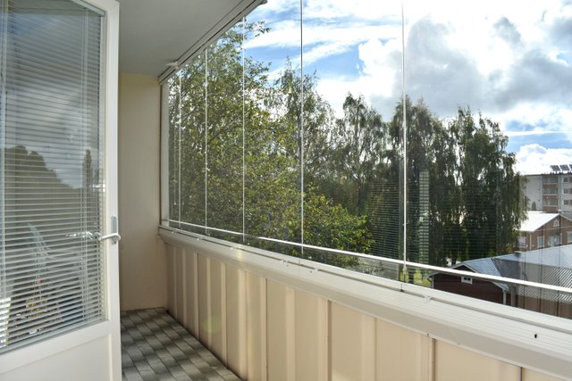 Keittiö on varustettu kaikilla tarvittavilla kodinkoneilla, ja olohuoneessa on tilaa sekä rentoutumiseen että vieraiden kestitsemiseen. Kaksi makuuhuonetta tarjoavat rauhalliset puitteet levolle. Etelään suuntautuva lasitettu parveke on täydellinen paikka nauttia aamukahvista tai ilta-auringosta.