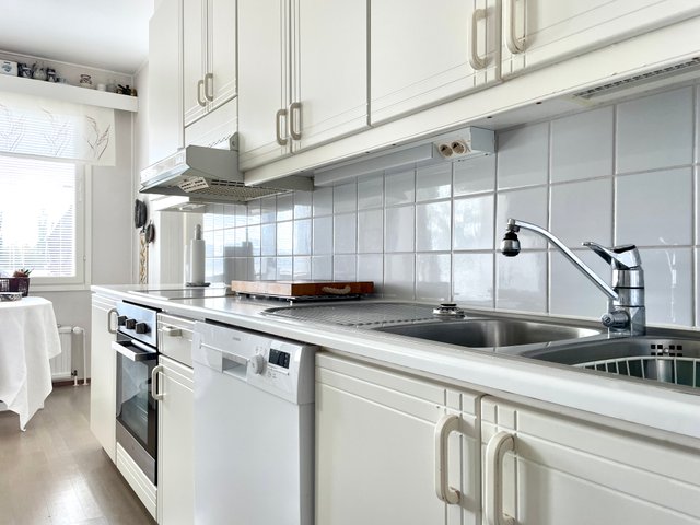 - Jääkaappi, jääkaappipakastin, jää-viileäkaappi, liesituuletin, uuni, liesi, ja astianpesukone