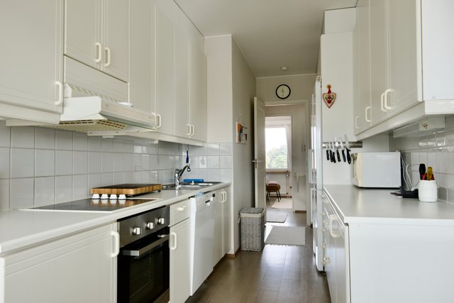 Lägenheten är på översta våningen , vilket ger en fantastisk utsikt och naturligt ljusinsläpp från de stora fönstren. Lägenhetens planlösning är praktisk och erbjuder gott om plats för både en familj eller ett par.
