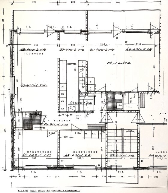- Pesutupa, kuivaushuone, mankeli, urheiluvälinevarasto, kellarikomero (Kaksi varastotilaa kellarissa.), ja pyörävarasto
