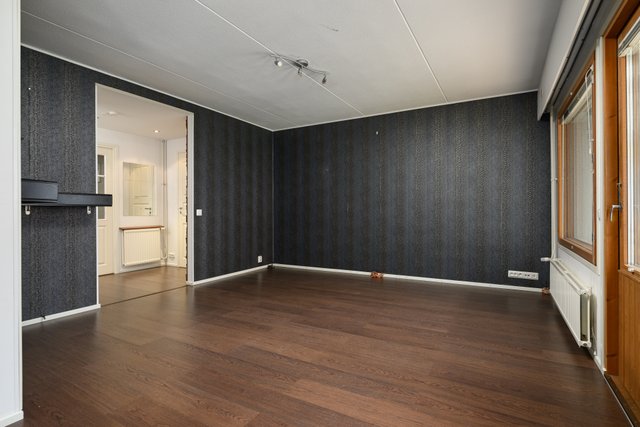 - Koko asunnossa käytetty samaa laminaattia, joka luo rauhallisen ja tyylikkään ulkoasun.