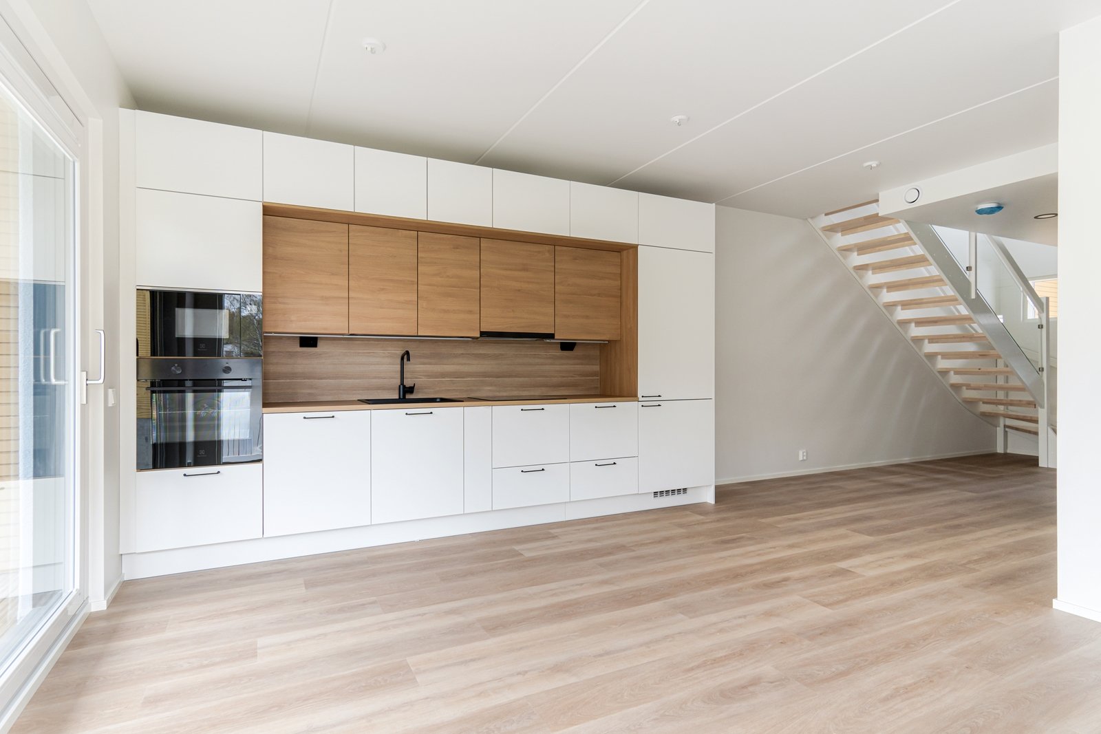 - Jääkaappi (AEG), erillinen pakastin (Electrolux), erillisuuni (Electrolux), liesituuletin, astianpesukone, ja kiinteät valaisimet