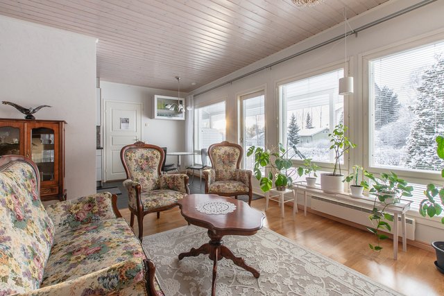 - Ikkunat ovat läpi talon, olohuoneen ja keittiön ikkunat ovat takapihalle Punalantielle päin, näkymä avara. Makuuhuoneen ikkunat etupihalle päin.