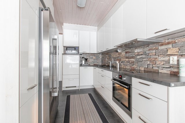 - Jääkaappipakastin (2016), astianpesukone (2024), liesituuletin (2016), erillisuuni (2016), ja liesi (induktioliesitaso 2016)