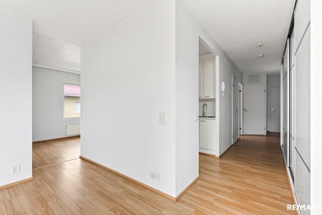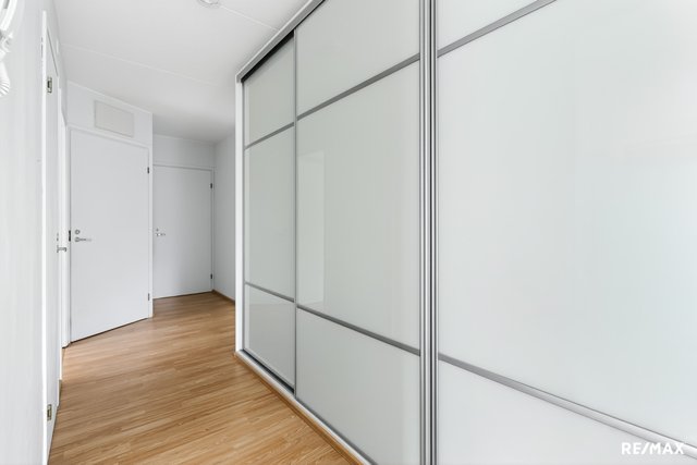 - Eteisessä laminaattilattia, maalatut seinät, reilusti säilytystilaa liukuovikaapistossa.