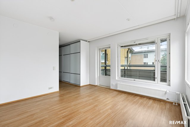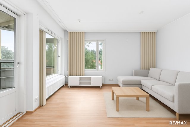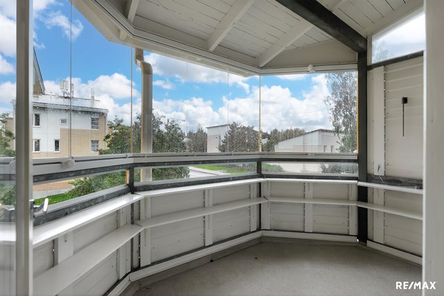 Asunnon 73 neliötä on jaettu toimivasti. Valoisan olohuoneen jatkeena on lasitettu parveke. Parvekkeelta aukeaa vehreä näkymä. Asunnon kaksi makuuhuonetta on sijoitettu asunnon eri puolille. Ikkunallisessa kylpyhuoneessa on infrapunasaunan lisäksi suihku ja hyvin tilaa pyykkihuollolle. Säilytystilaa on runsaasti eteisen kaapistossa sekä toisessa makuuhuoneessa.