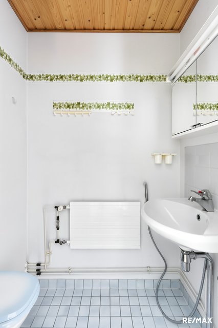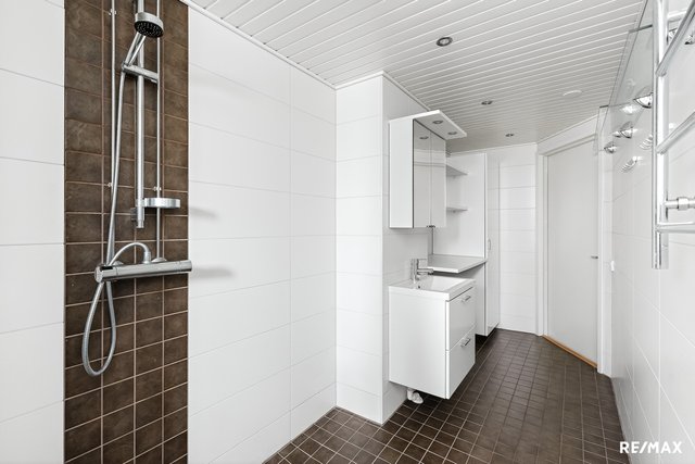 - Suihku, peilikaappi, allaskaappi, pesukoneliitäntä, pesuallas, ja kiinteät valaisimet