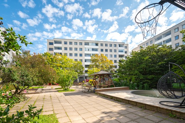 - Taloyhtiön tilat: - Kuntosali - Sauna - Mankeli - Väestönsuojat - Ulkoiluvälinevarasto - Uima-allas - Kylmäsäilytystilat - Kellarikomerot - Pesutupa - Autotalli/-hallipaikat 128 kpl